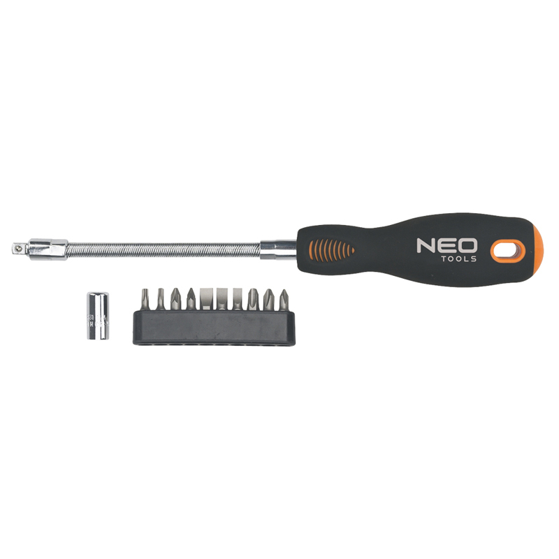 Screwdriver With Flexible Shaft, Set Includes 12 Pcs, Tri-Lobular Handle Shape, Profiled Thumb Rest, Handle Padded With TPR Plastic Resistant to Chemicals, Mineral Oils, Greases, Adapter for Screwdriver Bits