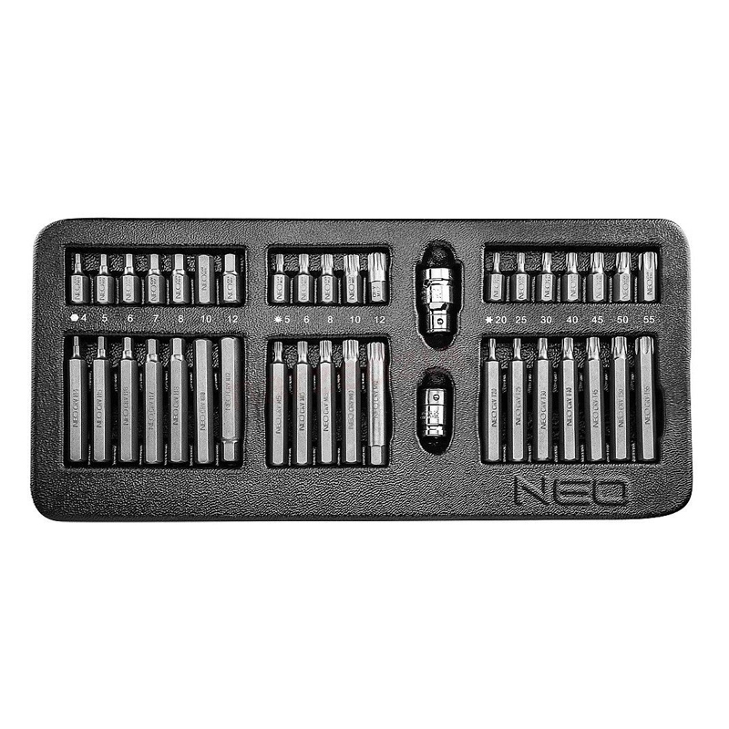 Screwdriver Bits, Set of 40 Pcs, Crv, Hex Length 30 mm: H4, H5, H6, H7, H8, H10, H12, Hex Length 75 mm: H4, H5, H6, H7, H8, H10, H12, Spline Length 30 mm: M5, M6, M8, M10, M12, Spline Length 75 mm: M5, M6, M8, M10, M12, Torx Length 30 mm: T20, T25, T30, T40, T45, T50, T55, Torx Length 75 mm: T20, T25, T30, T40, T45, T50, T55, Adapters: 1/2"-10 mm, 3/8"-10 mm, Profiled Tray