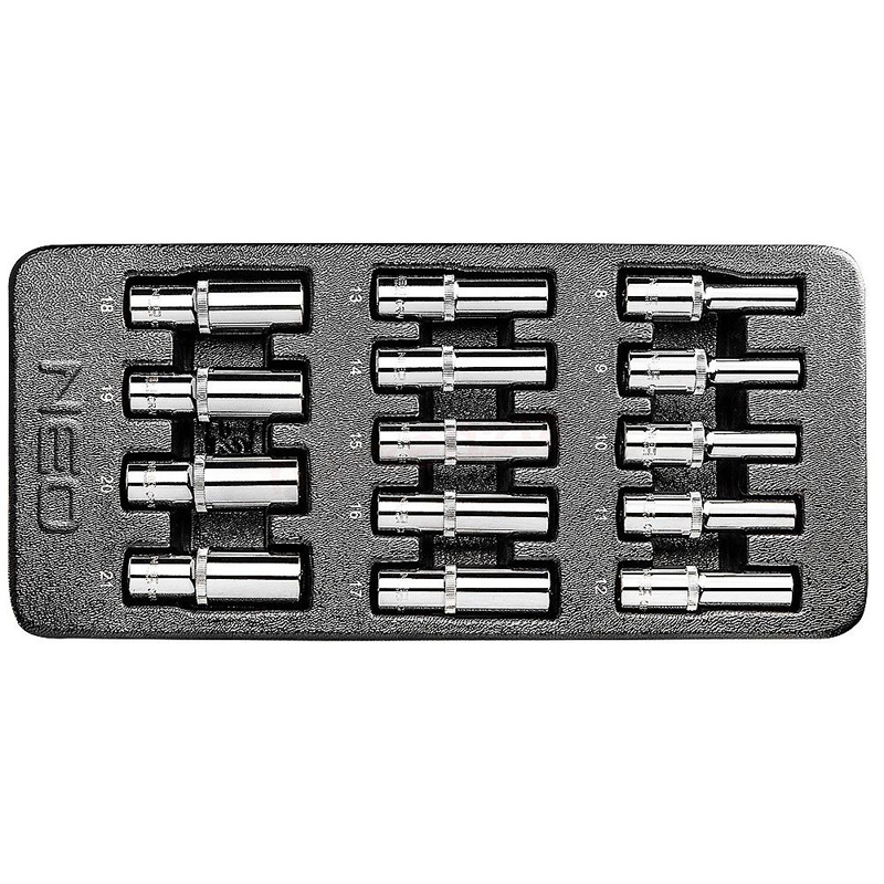 Neo Deep Sockets 1/2 In; 8–21 mm, 14 Pcs Set, Crv Steel, 25 Years Warranty, Sizes: 8, 9, 10, 11, 12, 13, 14, 15, 16, 17, 18, 19, 20, 21 mm