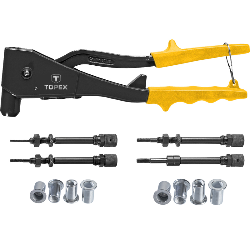 Nut Riveter For M3, M4, M5, M6 Aluminum, Steel, Stainless Steel Nut Rivets, 4 Heads, L 270 mm, Weight 1.1 Kg